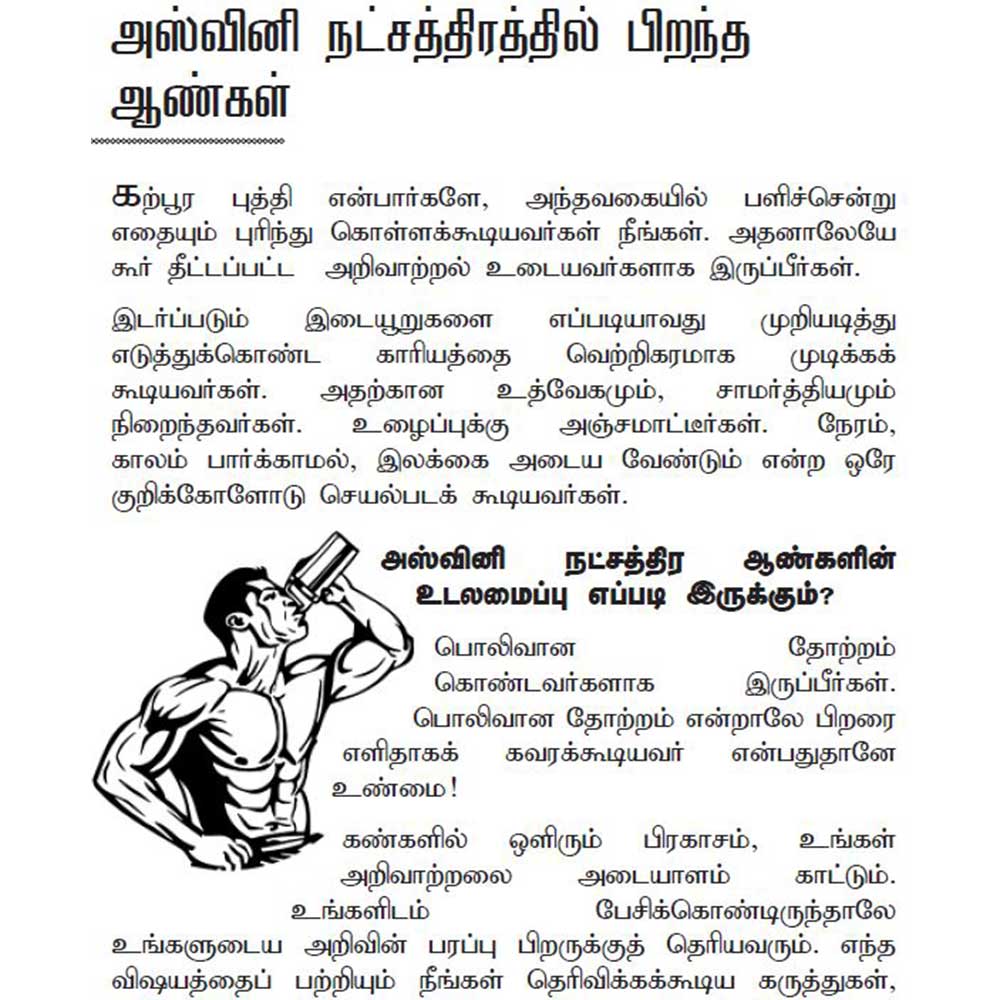 Ashwini Nakshatra Astrology is a unique Tamil astrology book that offers a complete lifetime prediction for those born under the Ashwini star. Unlike yearly horoscopes, this book focuses on your entire life’s journey — from education to career, relationships, remedies, and spiritual upliftment.