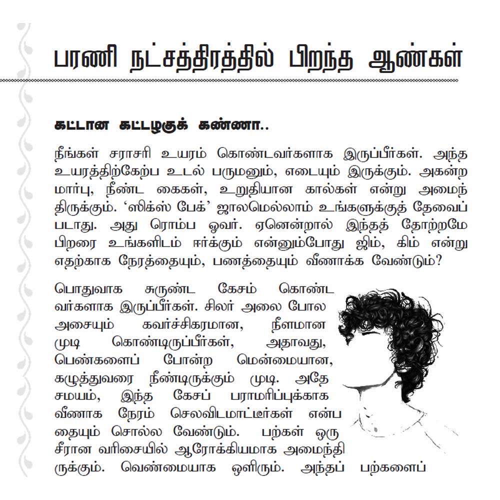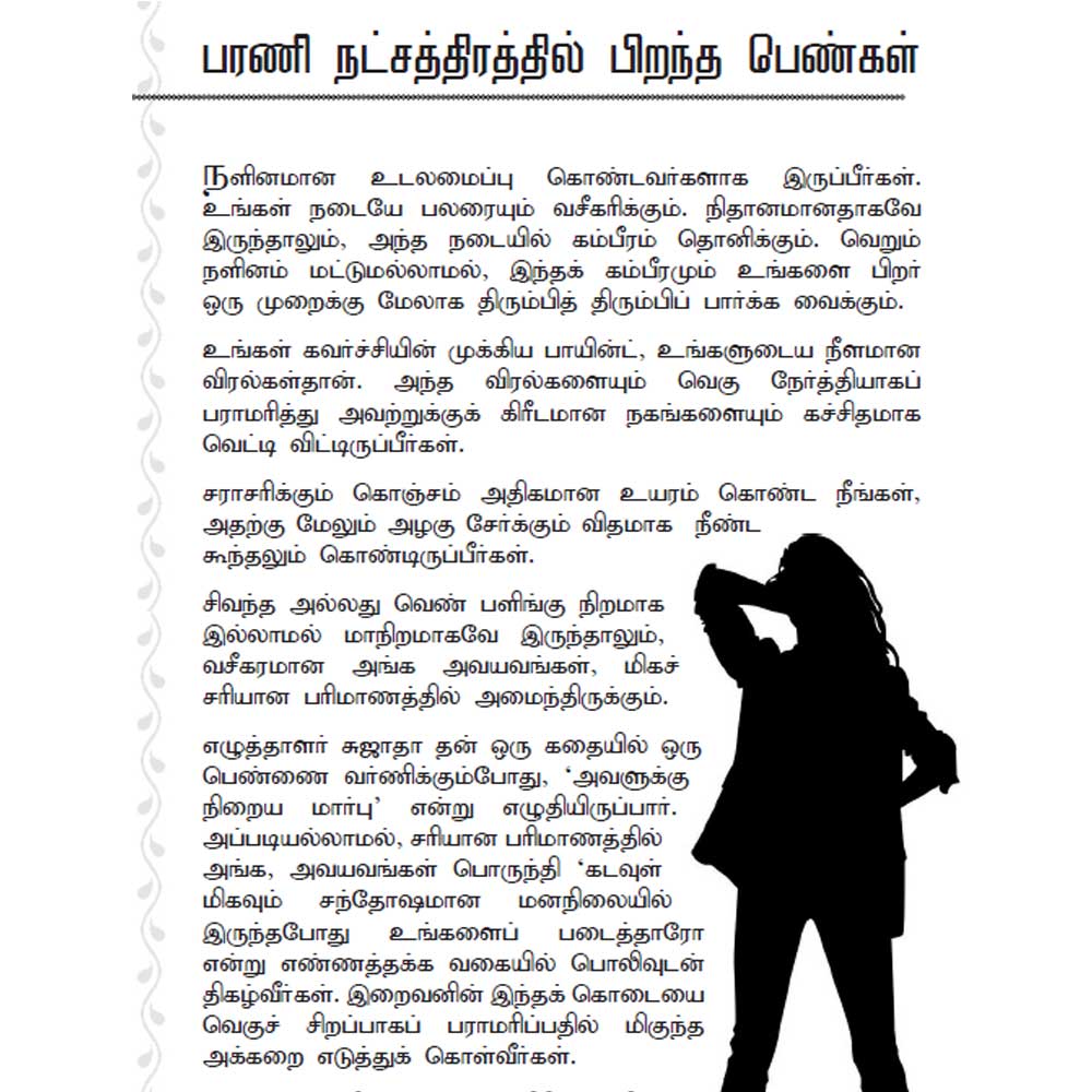 Barani Nakshatra Astrology is your complete lifetime guide if you are born under the Barani star. Written in Tamil, this special edition dives deep into your destiny — with no time limitation. These predictions are valid for your entire life, not just a year.